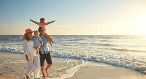 счастливых отдохнувших семей